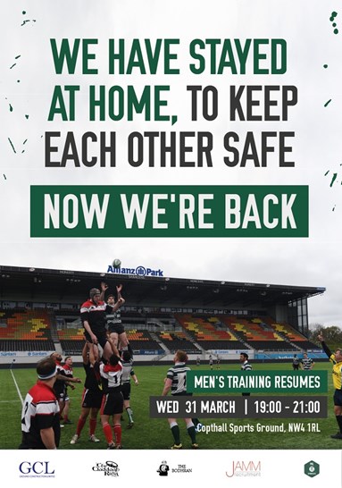 Hendon RFC are pleased to announce we will be returning to training on Wednesday 31st March 2021.
